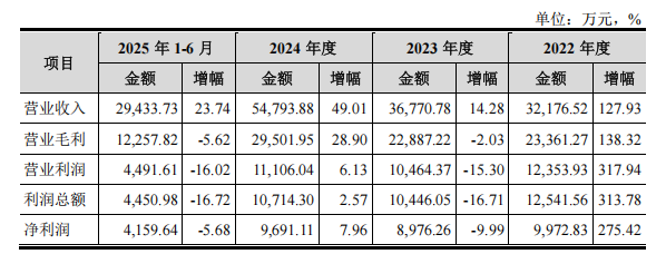 营收方面,跟着自工事务规划扩展,陈述期内,恒坤新材营收规划继续扩展,2022年至2024年以及2025年上半年的营收分别为3.22亿元、3.68亿元、5.48亿元、2.94亿元。不过,受引进事务动摇及研制投入增加等,恒坤新材的净利润在2023年和本年上半年呈现下滑。2022年至2024年以及2025年上半年的净利润分别为9973万元、8976万元、9691万元、4160万元。